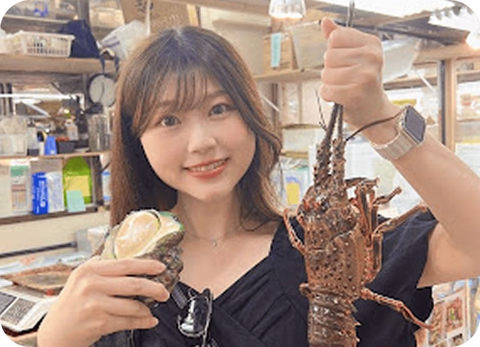 沖縄旅行に行きました!市場にて自分の顔より大きいイセエビをゲット。このあとその場でさばいてもらい、美味しくいただきました。